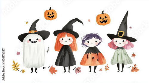 Obraz premium ハロウィンコンセプト おばけと魔女の水彩イラスト