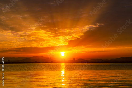 © miiko, Obraz premium 琵琶湖畔の朝日