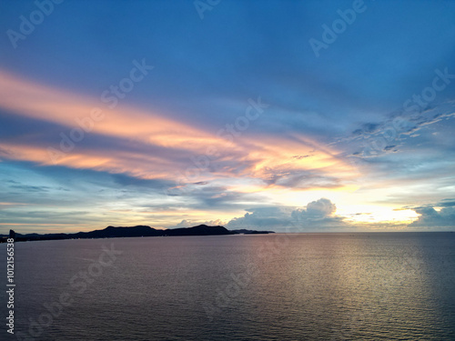 © rokacaptain, Obraz premium 컬러풀한 노을과 함께하는 태국 파타야 남부의 나좀티엔 해변과 선착장, 방파제