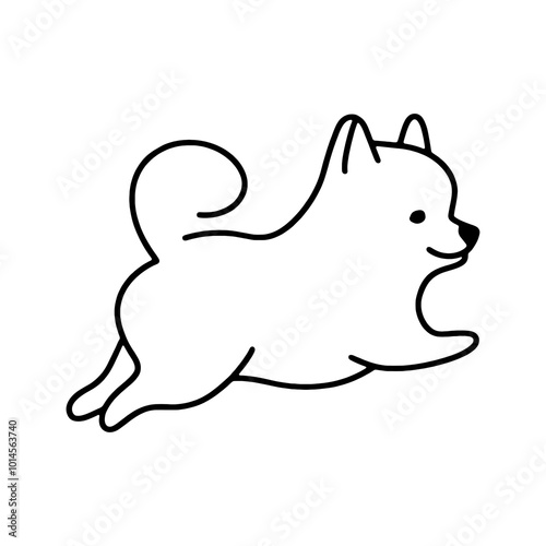 © n.s, Obraz premium だらしないポーズでリラックスしている子犬のシンプルな線画イラスト 透過背景の切り抜き