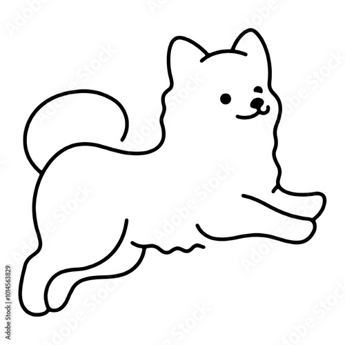 © n.s, Obraz premium だらしないポーズでリラックスしている子犬のシンプルな線画イラスト 透過背景の切り抜き