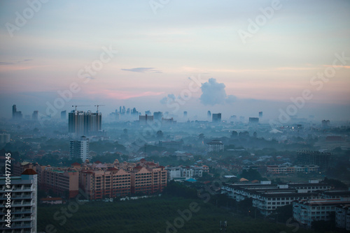 © rokacaptain, Fototapeta premium 안개속 몽환적인 느낌의 파타야 도심과 빌딩들, 콘도 건물들,