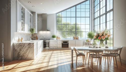 Fototapeta premium 白いモダンなキッチンスペース4