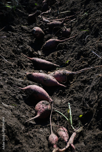 © v_0_0_v, Fototapeta premium 豊作のサツマイモ