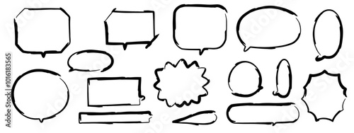 © Mercer, Obraz premium 筆で書いた手書きの吹き出しベクターイラストセット