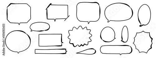 © Mercer, Obraz premium 筆で書いた手書きの吹き出しベクターイラストセット