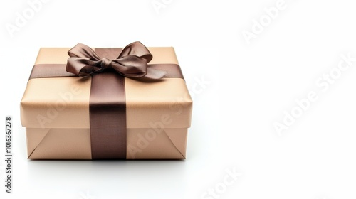 Obraz premium 白い背景に置かれた茶色い清潔感のあるギフトボックス