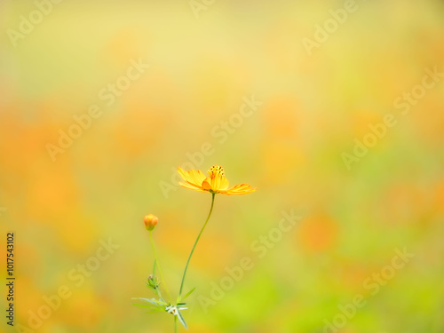 © STOCK THE WORLD, Obraz premium 秋の公園や花壇を彩るコスモス(キバナコスモス)のある風景。背景。自然風景素材。