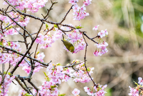 Obraz premium 河津桜とメジロ 静岡県加茂郡河津町