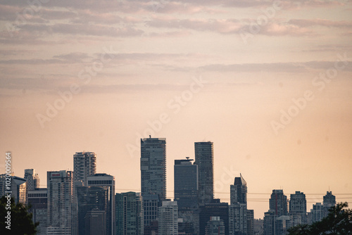 Obraz premium ビル 夕焼け 朝焼け 背景 素材