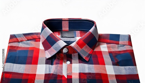 © Shousei, Fototapeta premium カジュアルなチェック柄シャツの襟部分が映し出され、襟の周りに空間が広がるシンプルなデザイン。余白部分にテキストやブランドメッセージを配置できる