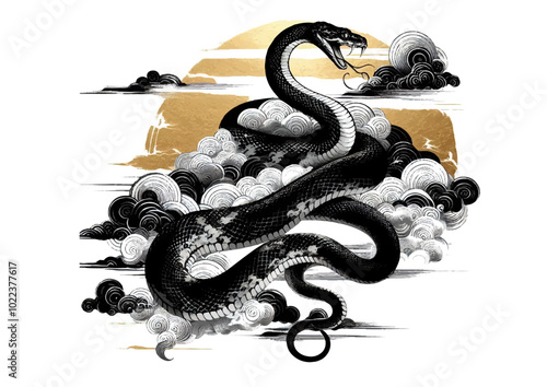 © rrice, Obraz premium 2025年巳年年賀状素材水墨画風