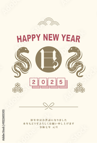 Obraz premium 年賀状 2025年 巳年