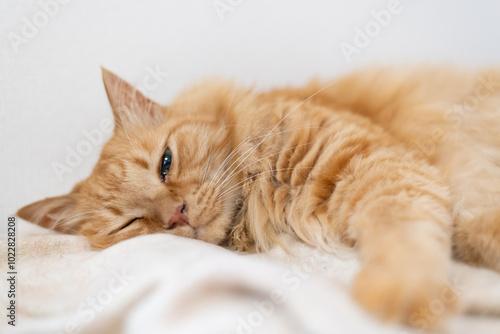 © rai, Fototapeta premium 眠るふわふわな毛並みの猫 茶トラ猫