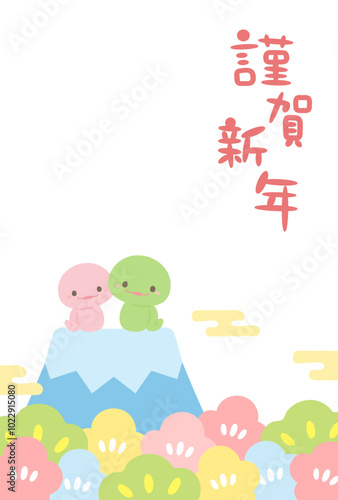Fototapeta premium かわいいヘビと富士山のデジタル年賀状03