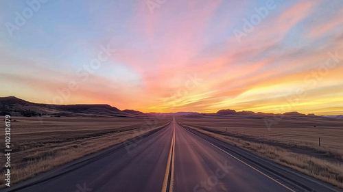 Fototapeta premium 夕焼けに続く果てしない道
