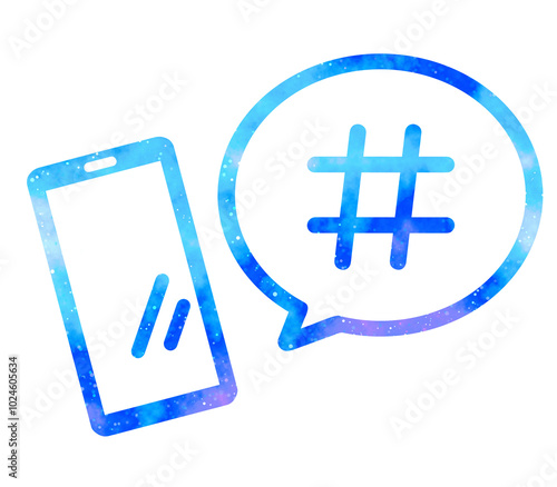 Obraz premium マーブルな星空|ハッシュタグとスマホ
