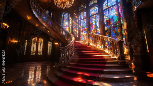 Obraz premium 豪邸の大理石の螺旋階段