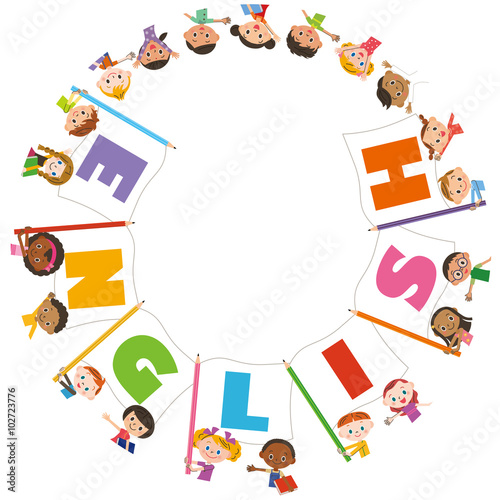 Obraz premium 英語の旗と子供集合
