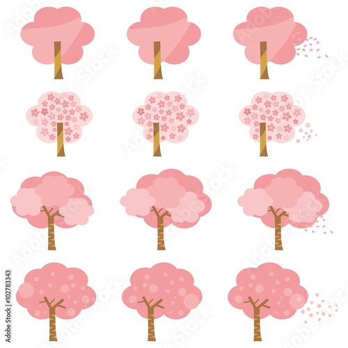 © kiko, Fototapeta premium シンプルな桜の木 セット