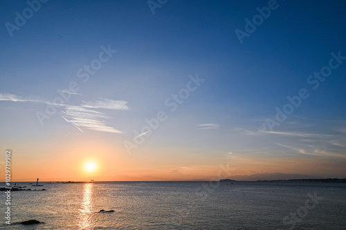 © Kazu8, Obraz premium 神奈川県葉山町森戸海岸からの夕日