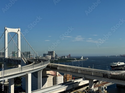 Obraz premium 昼のレインボーブリッジとお台場の風景