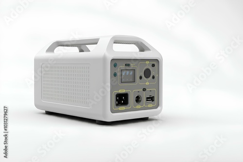 Fototapeta premium ポータブル電源、モバイルバッテリー、発電機、充電、白背景