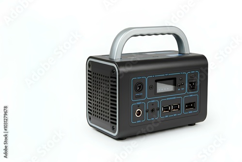 Fototapeta premium ポータブル電源、モバイルバッテリー、発電機、充電、白背景