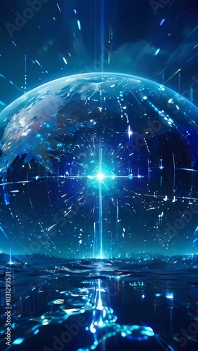 © 月とサカナ SNAO, Obraz premium ビジネス広告背景 テクノロジーネットワークイメージ青の背景