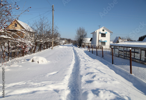 Fototapeta premium зимняя тропинка по сугробам в дачном поселке