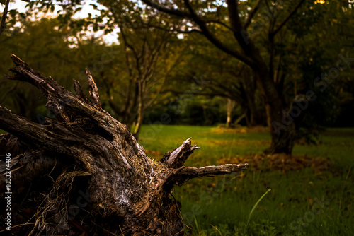 Obraz premium <長崎県五島市><五島鬼岳樹木園>朽ちた切り株