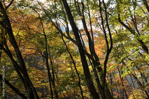 © Yuko, Obraz premium 秋 西沢渓谷 川 谷 滝 落ち葉