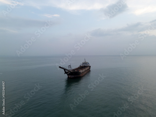 © rokacaptain, Fototapeta premium 파타야 좀티엔 비치의 명물, 준설선과 노을