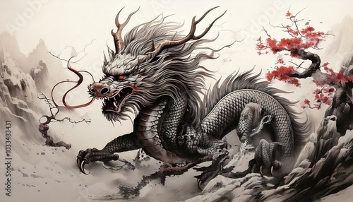 Obraz premium 中国神話に現れる伝説上の動物、麒麟