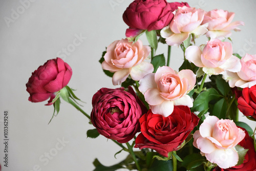 © 元木文佳, Obraz premium ピンクと赤のばら