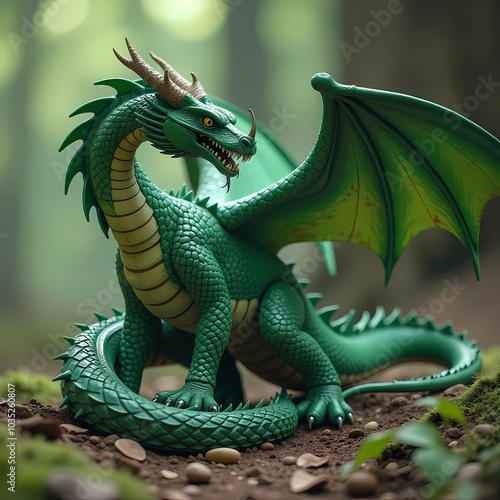 Obraz premium Фантастический рисунок зеленого лесного дракона