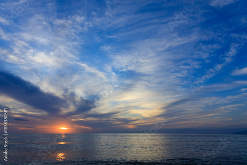 Obraz premium 海に沈む夕日 雲の動き 風景 日没