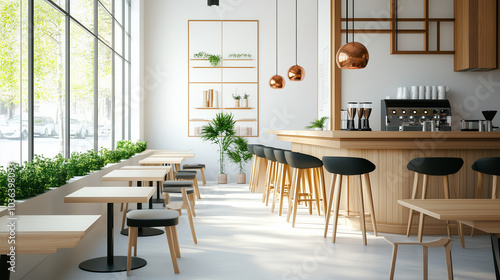 Obraz premium 内装で温かみのあるカフェまたはレストランの内装