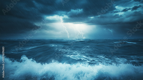 Fototapeta premium 海上に広がる雷雨
