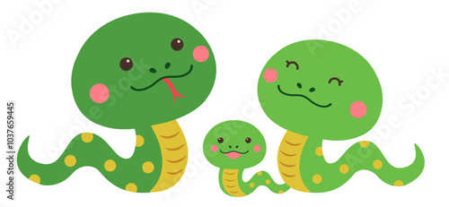 Naklejka premium 年賀状素材 巳年 かわいい蛇親子イラスト