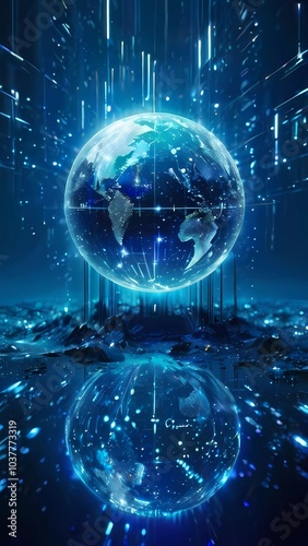 © 月とサカナ SNAO, Obraz premium ビジネス広告背景 テクノロジーネットワークイメージ青の地球と地平線