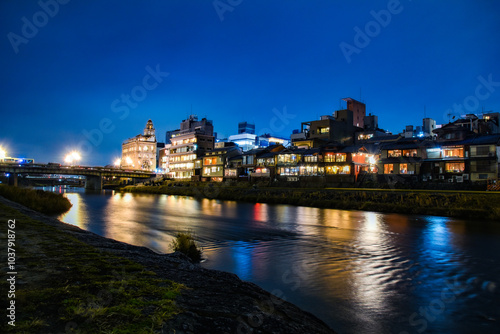 © riomiwa, Fototapeta premium 京都鴨川沿いの建物
