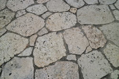 © nunini, Obraz premium 白い石垣の地面