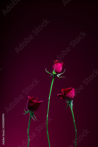 © japansociety, Obraz premium 赤背景で撮影した薔薇 バラ