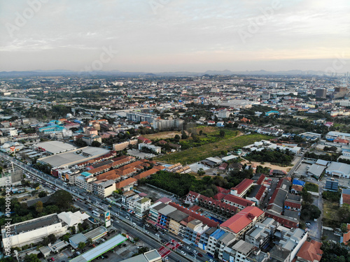 © rokacaptain, Fototapeta premium 아름다운 태국 파타야 고층빌딩들과 파타야 해변 그리고 산호섬 그리고  붉은 노을