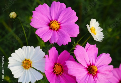 Obraz premium そよ風に揺れるコスモス 秋のコスモス畑