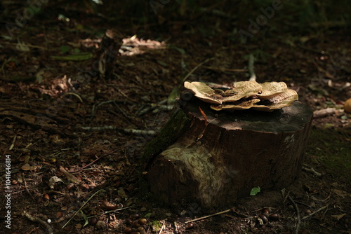 © akht.mymt, Obraz premium 切り株の上で大きく傘を広げるキノコの仲間