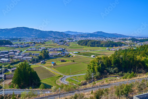 © Q2PHOTOAS, Fototapeta premium 新東名の長篠設楽原パーキングエリア下り展望台からの愛知県新城市の眺望