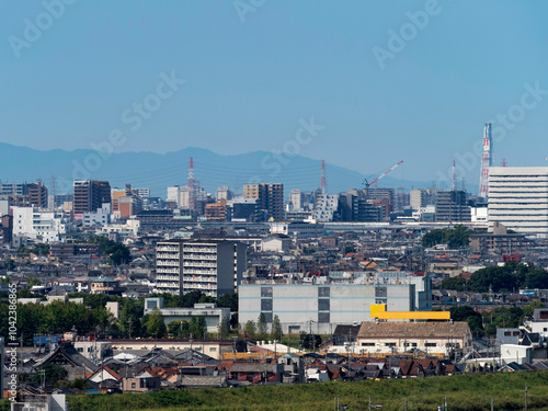 Obraz premium 高台から見る大阪の街並みと淡路島の風景