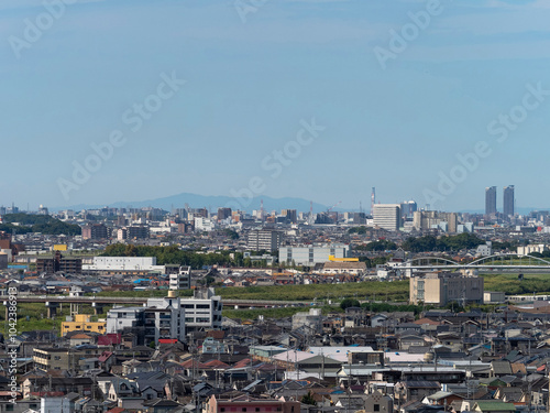 © しょこまろん, Naklejka premium 高台から見る大阪の街並みと淡路島の風景